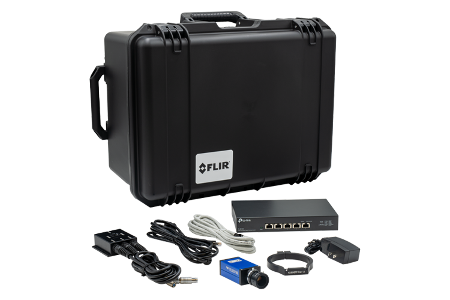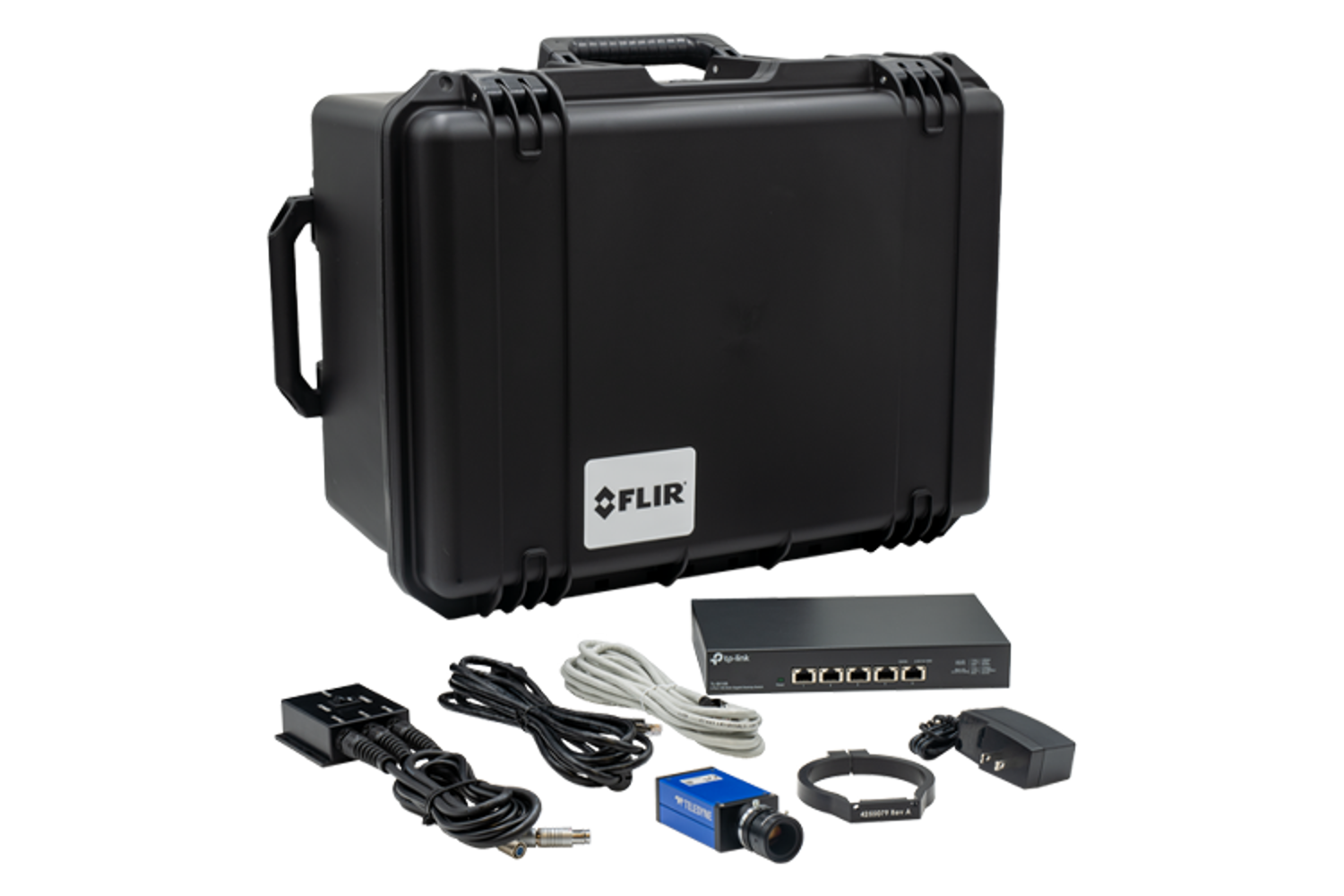 Designed for electronics design, renewable energy, and battery testing, this kit integrates seamlessly with FLIR A-Series thermal cameras. It includes a versatile visible imaging setup, custom mounting solutions, and robust networking capabilities, ensuring accurate, synchronized thermal and visual data capture for critical industrial and scientific applications.