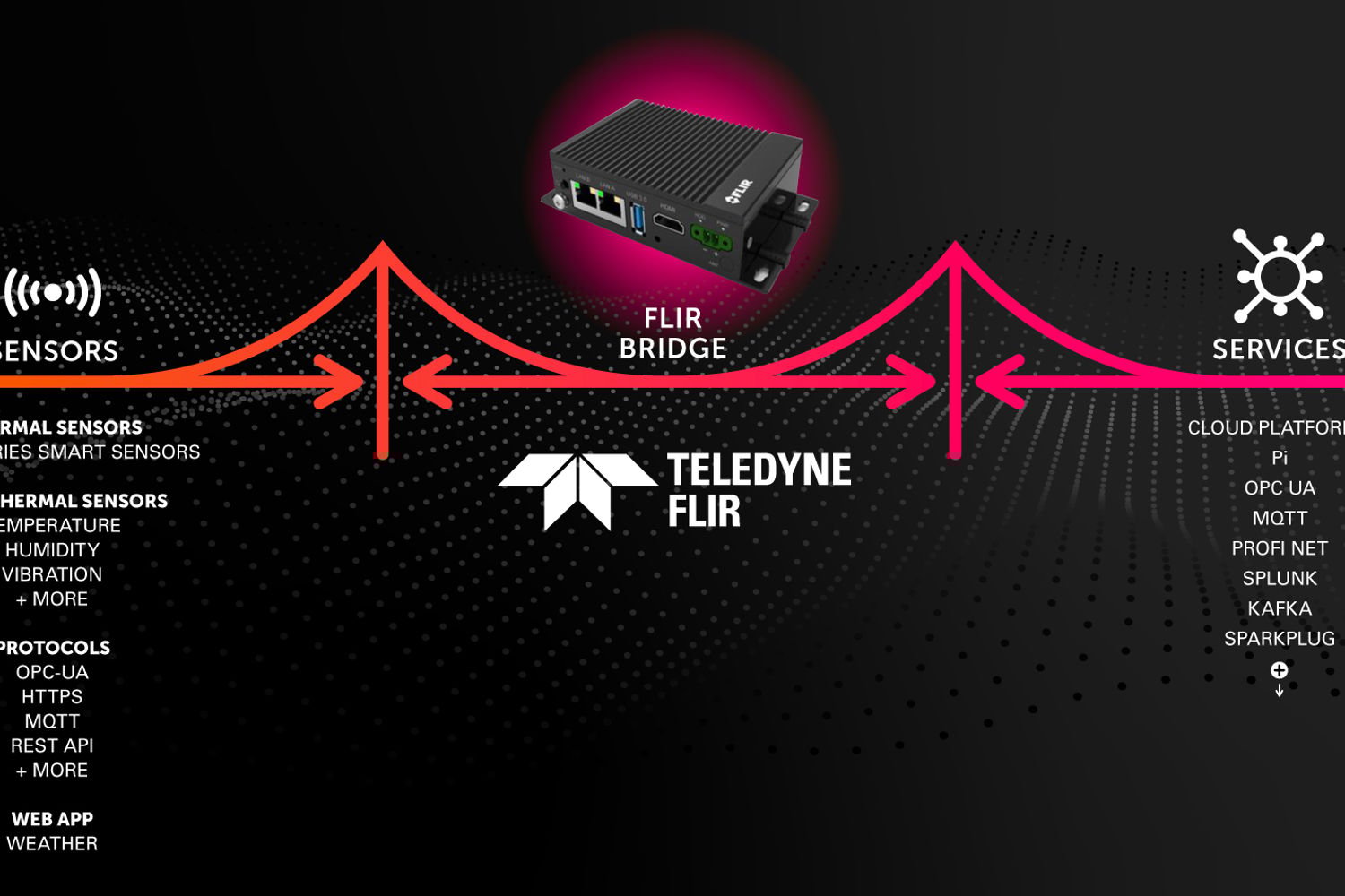The FLIR Bridge is an IIoT edge gateway that provides a total solution, connecting third party sensors from different manufacturers to a common industrial network – the first such solution in the industry. The Bridge performs the following tasks: