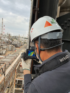 Previously, the Ulsan CLX used a gas detector to detect harmful gases. While products such as “sniffers” (toxic vapor analyzers) can detect the presence or absence of harmful gases leaked into the air, they are not capable of identifying the specific location where the gas was leaked. Sniffers also require the user to physically approach the inspection site, greatly increasing safety concerns. On the other hand, the GF320 can visualize harmful gas leaks and identify the leaked location. Inspectors can sweep the camera across a target area from a distance—improving safety—and avoid any gas clouds when moving in for a closer look. Other bennefits provided by the GF320 include thermal imaging, stability against changes in the surounding environmentm, durability, and ease of use. Thanks to its utility and reliability, the GF320 is a popular piece of equipment not only at Ulsan CLX’s Inspection Team, but also at its production departments, which have purchased more than ten additional GF320 cameras. Lee says, “We strongly recommend the GF320 to other oil refineries and chemical plants.”
