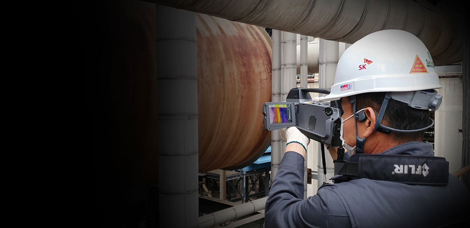 The FLIR GF309 is filtered to a special wavelength so that it can penetrate flames for inspections inside boilers and heaters. Using a GF309, SK Energy recently discovered deterioration caused by coking while inspecting a heater tube at one of its affiliates. Inspectors monitored its equipment around the clock using the GF309 camera, analyzing which components displayed temperature fluctuations. They quickly identified the defective heater tube and were able to remove and clean it without having to shut down the facility. The Ulsan CLX inspection team employs a FLIR GF346 OGI camera to detect leaks from its two carbon monoxide boilers. Normally, SK Energy converts the toxic carbon monoxide gas into non-toxic carbon dioxide before discharging it into the air. But since both boilers are old, they tend to leak carbon monoxide from their weldings. The GF346 allows the inspection team to pinpoint the source of leaks and repair them before the carbon monoxide can cause any safety issues. As for the FLIR T640 and E60, these thermal imaging cameras are portable and convenient enough to be widely used for daily safety inspections. In particular, the T640 and E60 can easily detect heat loss on horizontal and vertical piping that have gaps in the insulation. “FLIR’s cameras are excellent in visualizing invisible risk factors during facility safety inspections because of the easy-to-read thermal images they provide,” says Lee. He adds, “We expect FLIR’s range of optical gas imaging and thermal imaging cameras to play an important role in our safety inspections and worker protection.
