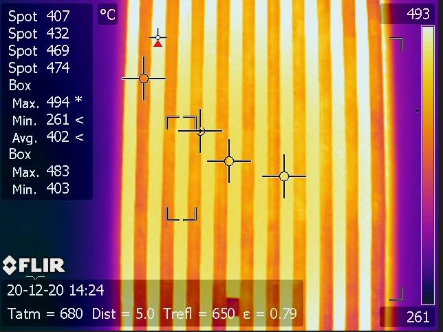 During unplanned outage, the damage areas observed were perfectly matching with those indicated by thermograms taken in-service.