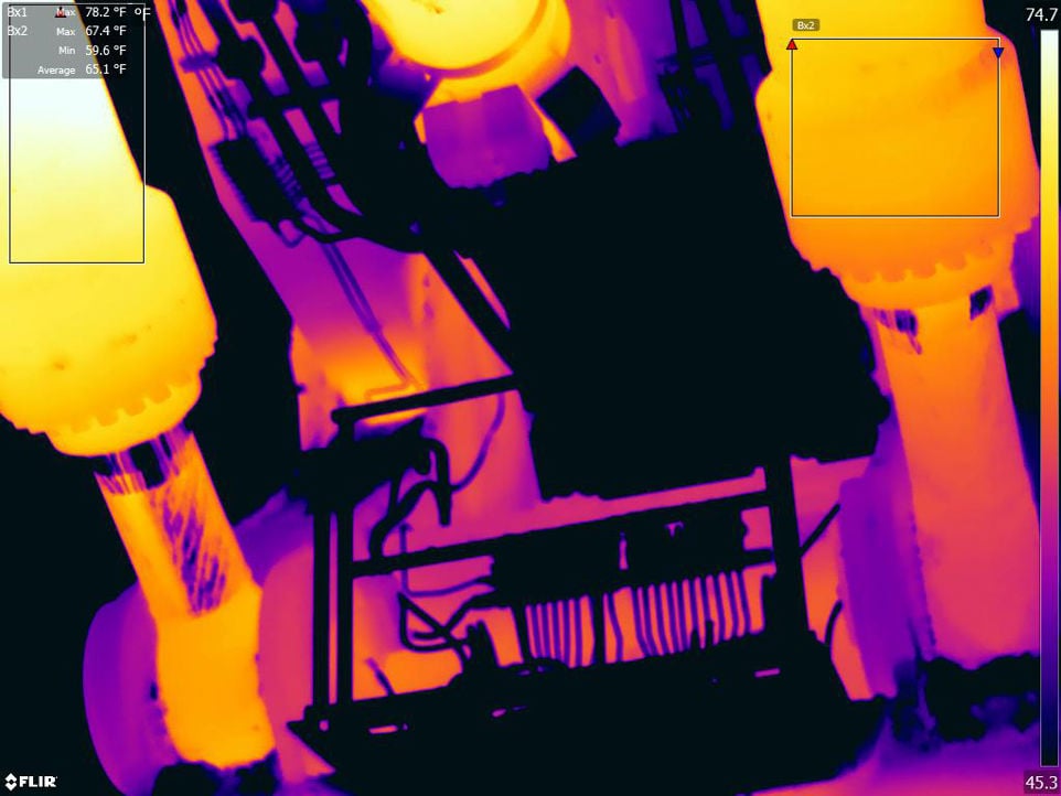 Power is distributed throughout the mine site starting from substations, running through high-voltage transmission lines, then to mobile substations and through transformers. The thermal image in Figure 1 shows a substation voltage regulator termination that is very near failure. This substation fed vital operations, and should it have failed and forced an unplanned shutdown, lost revenue could have reached millions of dollars.