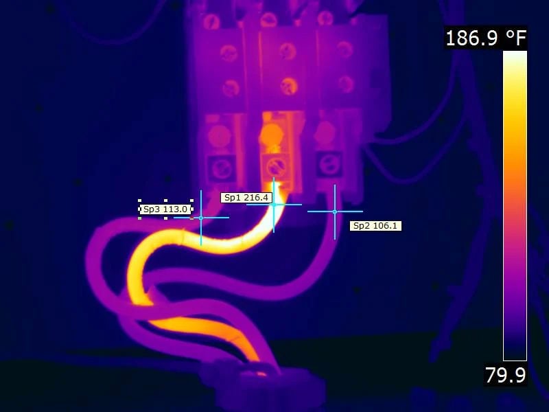 Fig.2 Contractor termination near failure that feeds a VFD processing motor.