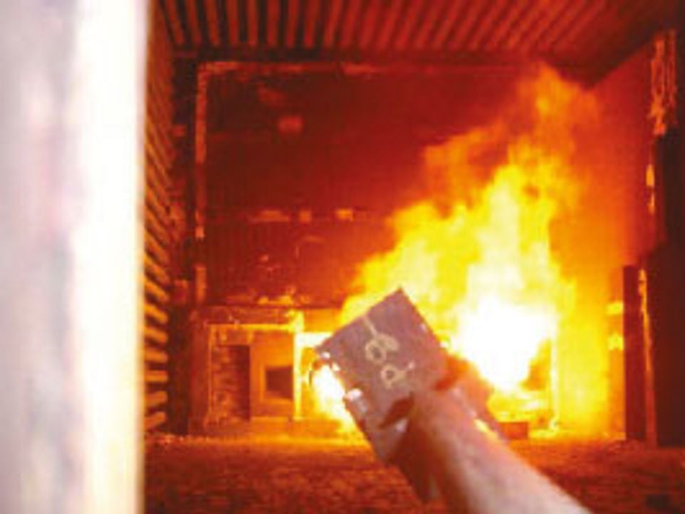 The thermocouple probe is inserted in the furnace. ­Tournieux then uses the temperature reading to ­accu­­rately correct the thermal imaging camera for emissivity.