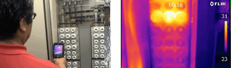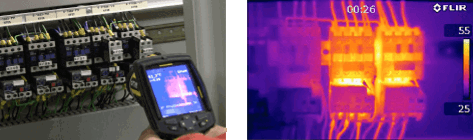 Where a spot pyrometer shows the temperature in one area, a thermal imaging camera can give an overview of an entire electrical cabinet, enabling quick and accurate faults detection.