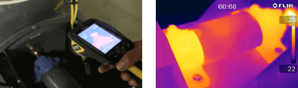 The thermal image shows mechanical components of an electromotor heating up due to friction.