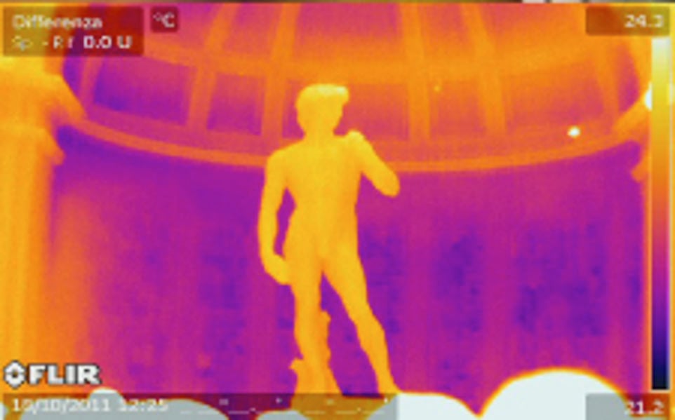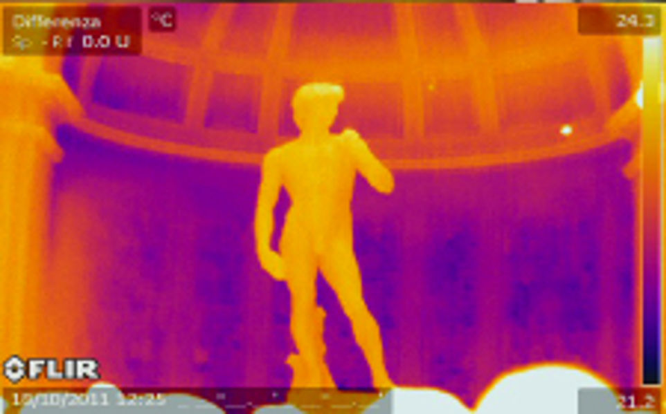 This thermal image shows that below the surface this wall along the nave of the Accademia Gallery contains arches for better weight distribution.