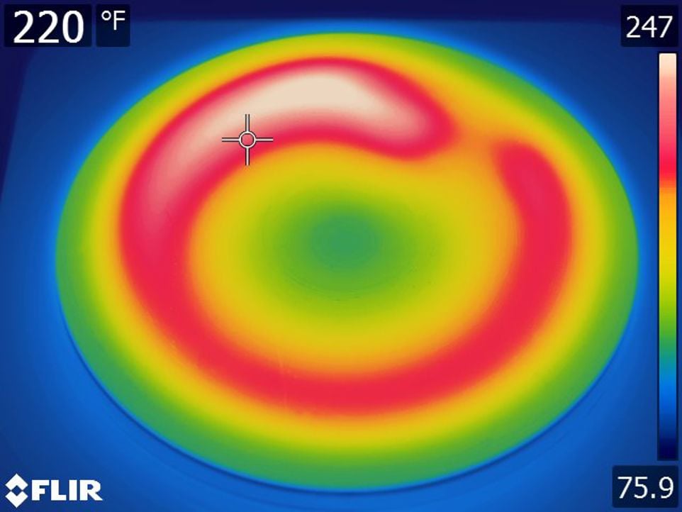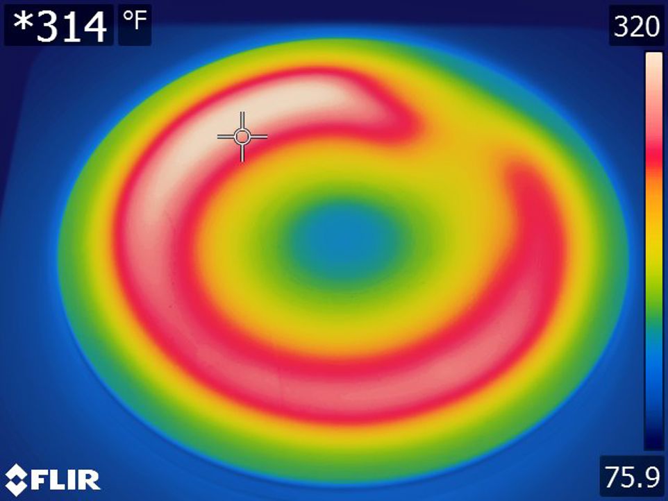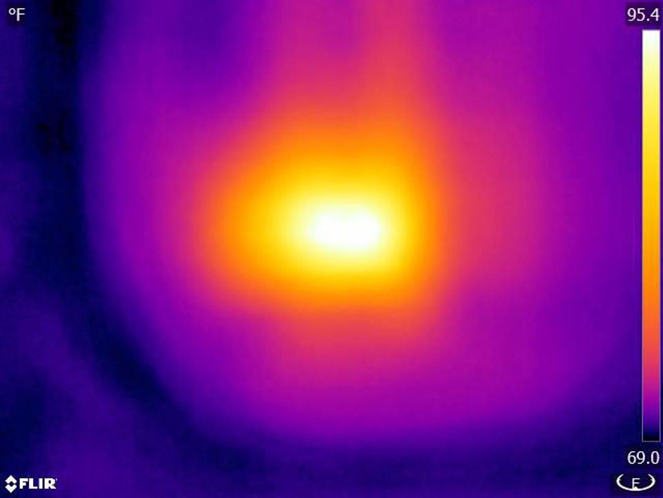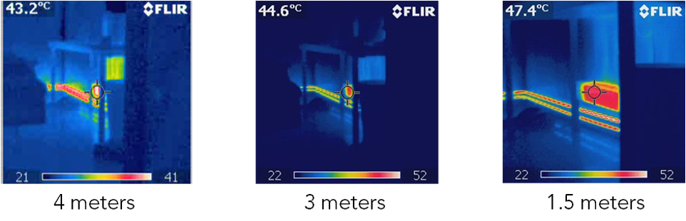 • Distance—the ‘D’ in FORD, always ensure you are at an appropriate distance from your target. In the example above, that distance would be 1.5 meters. This is all about resolution, the ability to resolve areas of thermal detail on an object, but also capture enough information to measure temperatures accurately. An infrared image is made up of pixels, individual detectors that sense infrared radiation. All infrared cameras have limits to what they can resolve of a given sized target at a given distance.Resolution is a function of the number of detectors in your camera and the size, or Field of View (FOV), of your lens. Make sure you get close enough to put as many detectors on your target as possible to ensure the best resolution of your object.  If you’re measuring temperature, a good rule of thumb is to  completely fill the spot circle on your measurement tool to ensure you’re at the right distance to get the most accurate reading.