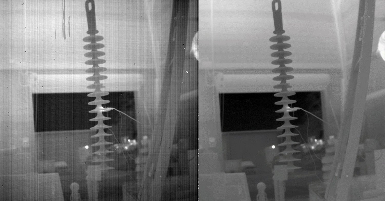 Non-uniformity correction (NUC) adjusts for minor detector drift that occurs as the scene and environment change. Basically, the camera's own heat can interfere with its temperature readings. To improve accuracy, the camera measures the IR radiation from its own optics and then adjusts the image based on those readings. NUC adjusts gain and offset for each pixel, producing a higher quality, more accurate image.