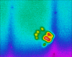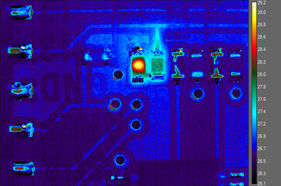 The thermal images above compare the best close-up magnification that can be achieved with a cooled and uncooled camera system. The image on the left was taken with a 4× close-up lens and 13μm pitch cooled camera combination resulting in a 3.5μm spot size. The image on the right was taken with a 1× close-up lens and 25μm pitch uncooled sensor resulting in a 25μm spot size. Cooled cameras typically have greater magnification capabilities than uncooled cameras due to sensing shorter infrared wavelengths. Because cooled cameras have greater sensitivity characteristics, lenses with more optical elements or thicker elements can be used without degrading the signal to noise ratio allowing for better magnification performance.