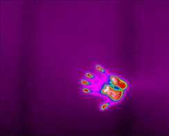It is often difficult to fully appreciate the value offered by the improved sensitivity of cooled thermal cameras. How do you get a feeling of the benefit from a 50mK sensitivity uncooled thermal camera in comparison to a 20mK sensitivity cooled thermal camera? To help illustrate this benefit we ran a quick sensitivity experiment. For this comparison we put our hand on a wall for a brief few seconds to create a thermal handprint. The first two images show the handprint immediately after the hand was removed. And the second set of images shows the thermal handprint’s signature after two minutes. As you can see, the cooled camera can still see most of the thermal signtature of the handprint, whereas the uncooled cameras only shows the partial remains of the handprint. The cooled camera clearly can detect smaller temperature differences and for longer durations than the uncooled camera. This means the cooled camera will provide better detail on your target and help you detect even the faintest of thermal anomalies."