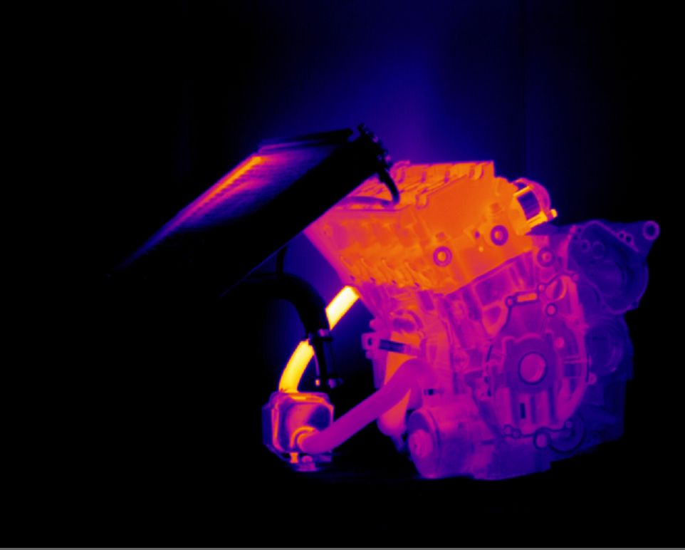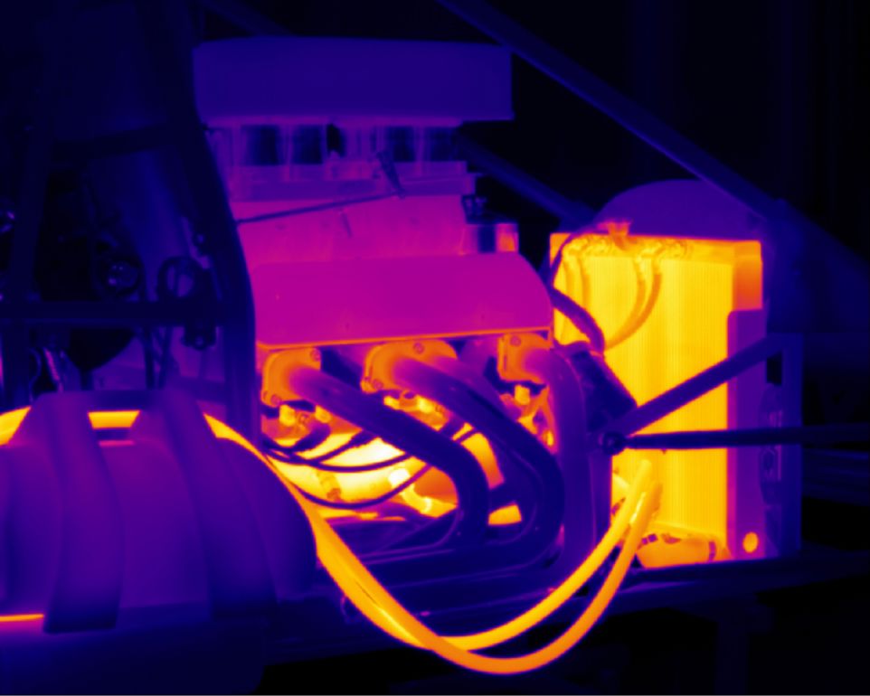 A thermal image of a pre-heater heating a 600cc racing engine