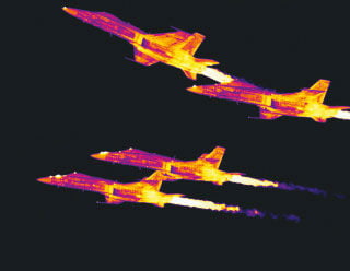 Stop motion image of FA-18 Hornets from a FLIR InSb cooled thermal camera