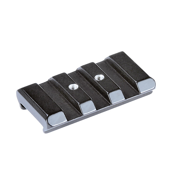 The Dovetail to Weaver Transfer Piece installs onto compatible devices for additional MIL-STD-1913/Weaver accessory mounting.