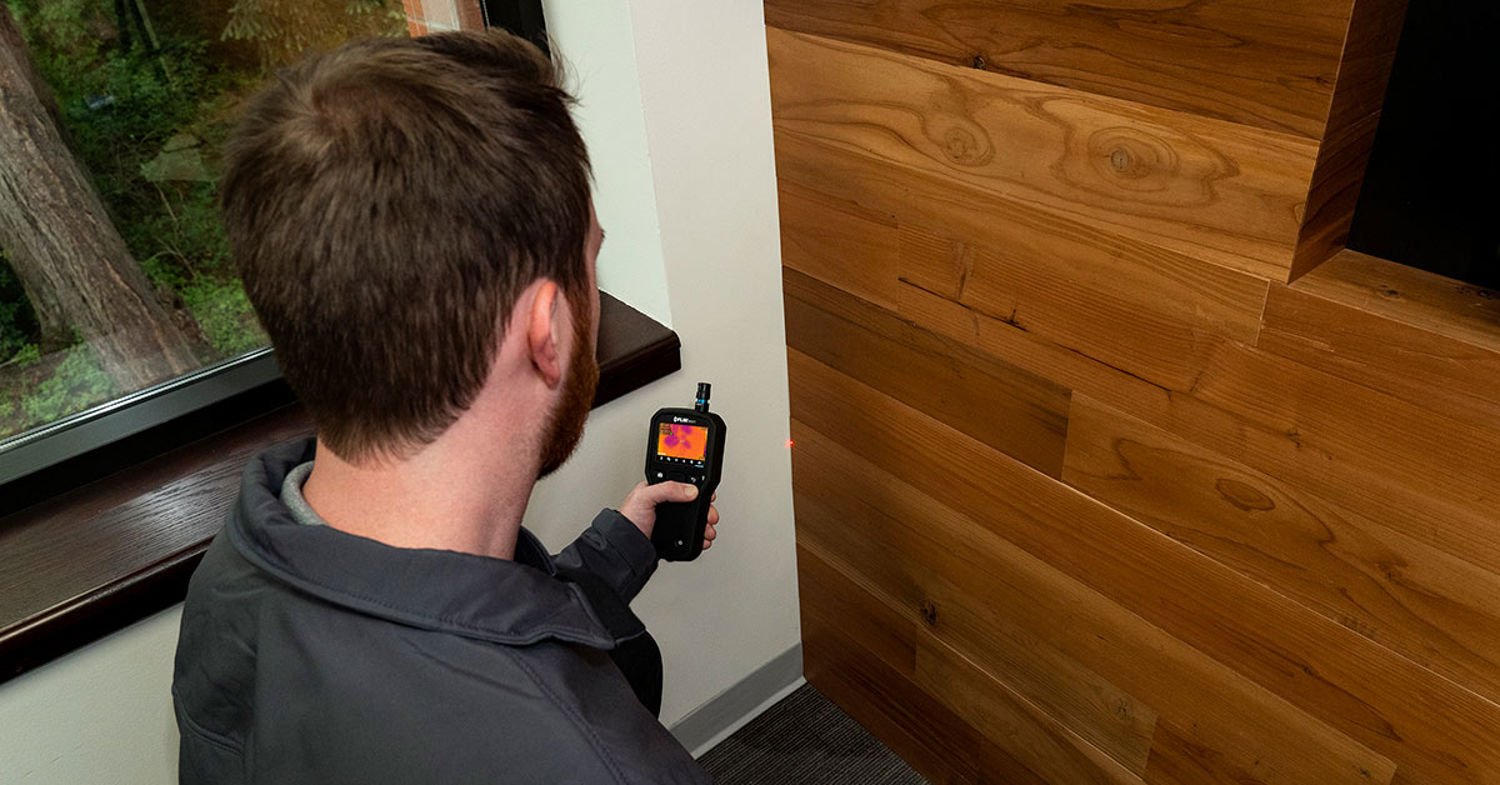 The location and source of water damage is easy to see with a combination tool that offers a thermal camera and moisture meter. Restoration crews can then determine the level of moisture using the device’s moisture measurement function.