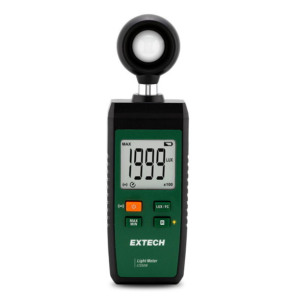 The LT250W is a compact light meter with Bluetooth® connectivity, which allows building and maintenance professionals to view and share light intensity data directly from a mobile device using the free ExView app. With the capability to capture data, display trends, set visual and audio alarms, and create and send reports, users can gain deeper insights on workplace comfort and building health. The LT250W is part of the Extech 250W Connected Series of products that can improve your ability to evaluate problems and report on them from the field. This allows you to improve the speed and quality of decisions to address critical issues immediately.