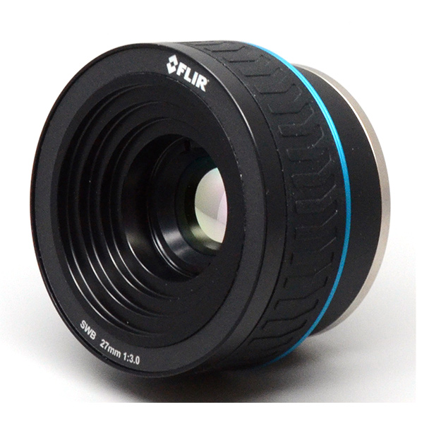 27 mm f/3 SWB Bayonet MWIR Lens for science cameras, including FLIR X65xx models.