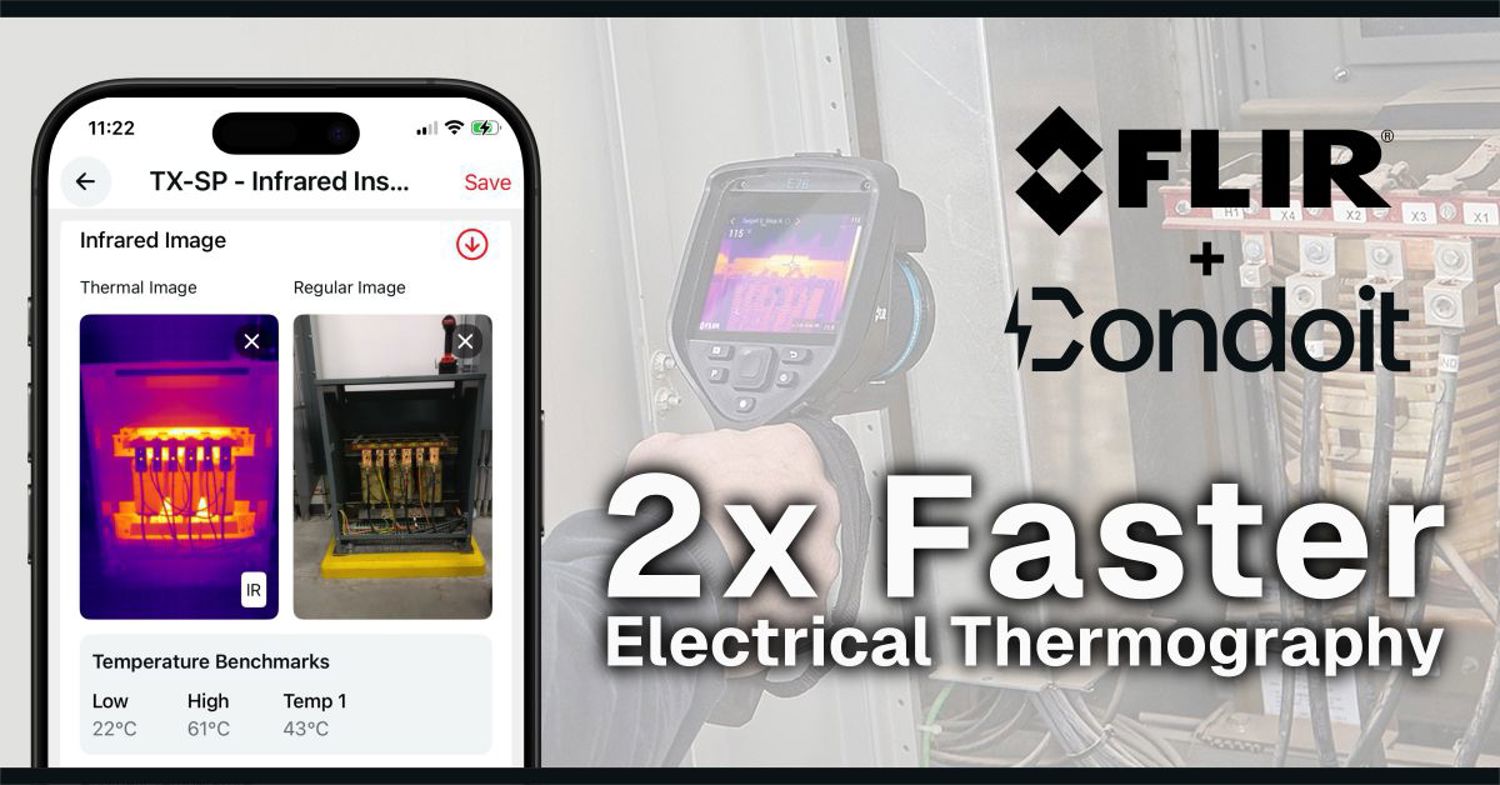 FLIR Systems is excited to announce a strategic partnership with Condoit that delivers a game-changing advancement: electrical thermography that's twice as fast as traditional methods. This breakthrough integration doesn't just save time—it improves contractor margins, accelerates customer deliverables, and captures higher-quality baseline data for safer electrical systems.
