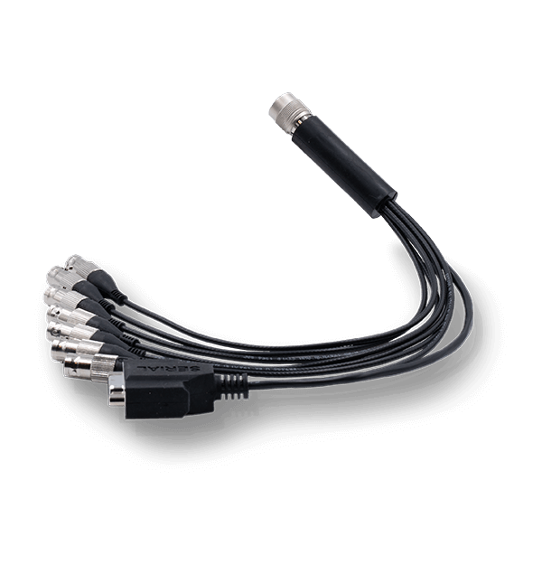 Connector pigtail providing access to additional on-camera signals. This AUX connector is for the FLIR A-Series cameras ONLY (A6780 MWIR, A6780 SLS, A8580 MWIR, A8580 SLS, A6700 MWIR, A6750 MWIR, A6750 SLS, A6260). Please refer to the user manual on specific connector and signal details.