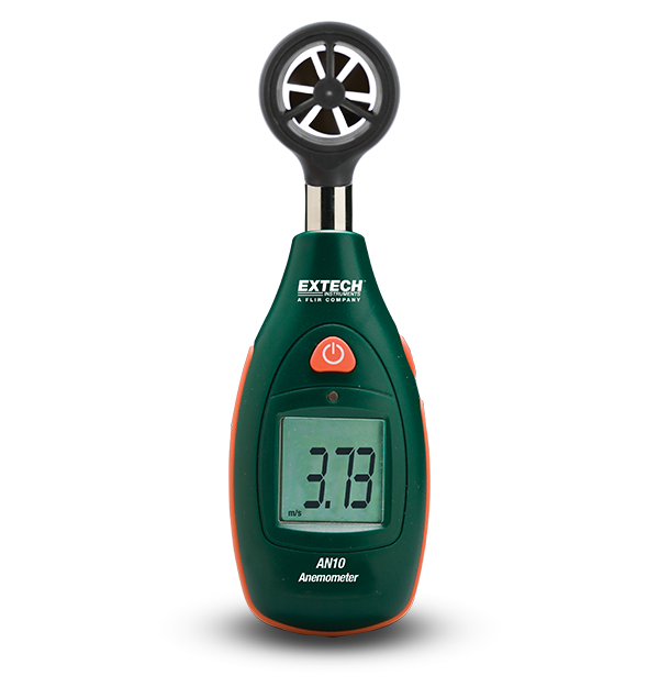 The Extech AN10 is a convenient Pocket Series Aemometer that is easy to use and easy to stow. Keep one handy for whenever you need to take a quick air velocity measurement from 0.8 km/h to 72 km/h (80 ft/min to 3936 ft/min). Features a large, backlit LCD display and a double-molded side grip. Complete with 9 V battery. CE certified.