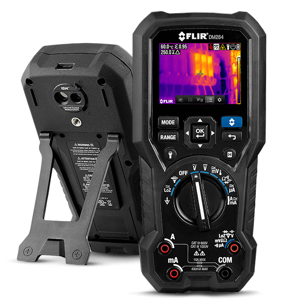 The FLIR DM284 is a professional, all-in-one True RMS digital multimeter and thermal imager ideal for field electronics, commercial electric, light industrial, field service, and HVAC work. Featuring Infrared Guided Measurement (IGM) technology powered by a built-in 160 × 120 FLIR thermal imager, the DM284 visually guides you to the precise location of an electrical problem without direct contact. You'll pinpoint hot spots faster, safer, and more efficiently.