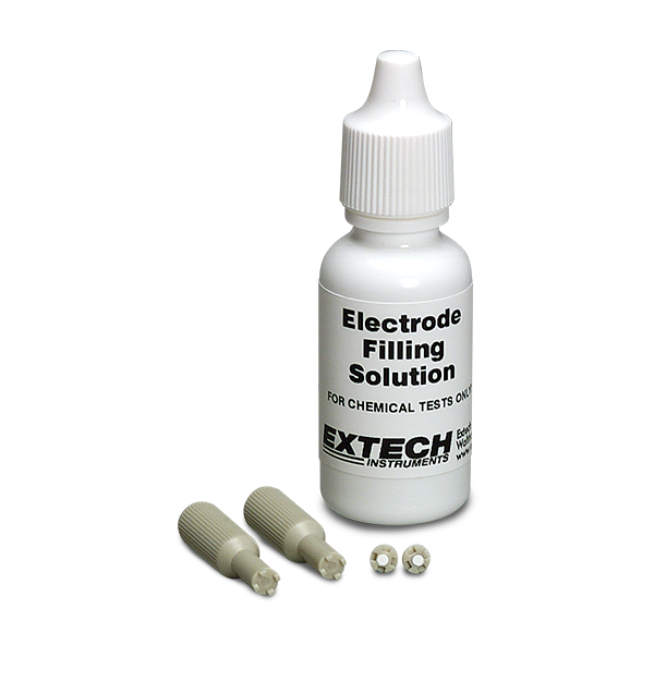 The Extech PH113 is an easily refillable solution for Extech PH115 pH electrodes. Includes 1.5 mL bottle KCl, 2 reference junctions, and 2 removal tools.