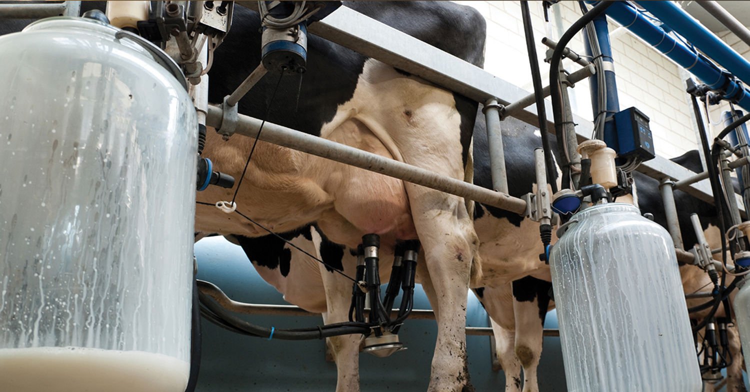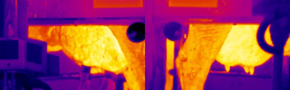 The two FLIR A310 thermal imaging cameras record images of the cow's udder from both sides.