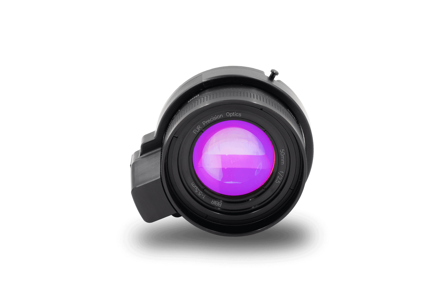 50mm, 1.0-5.5µm, f/2.5 Broadband FPO Motorized Bayonet Lens for FLIR R&D/Science cameras, including the A67xx, A85xx, X69xx MWIR, and X85xx MWIR.