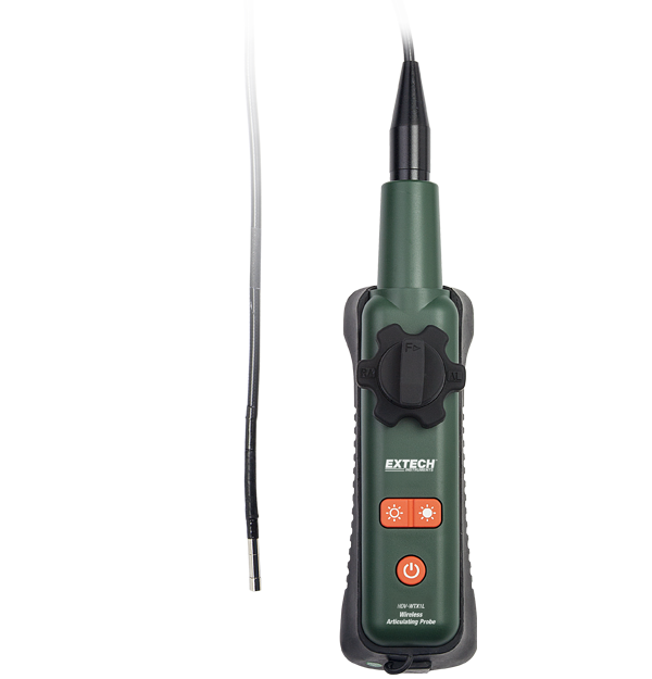 The Extech HDV-WTX1L is a Wireless Handset and Articulating Probe with a long focus range. The semi-rigid, nondetachable probe is 1 m fully extended. The 6 mm diameter camera has 60° FOV and a long depth of field. The HDV-WTX1L features wireless transmission to HDV600 Video Scope.