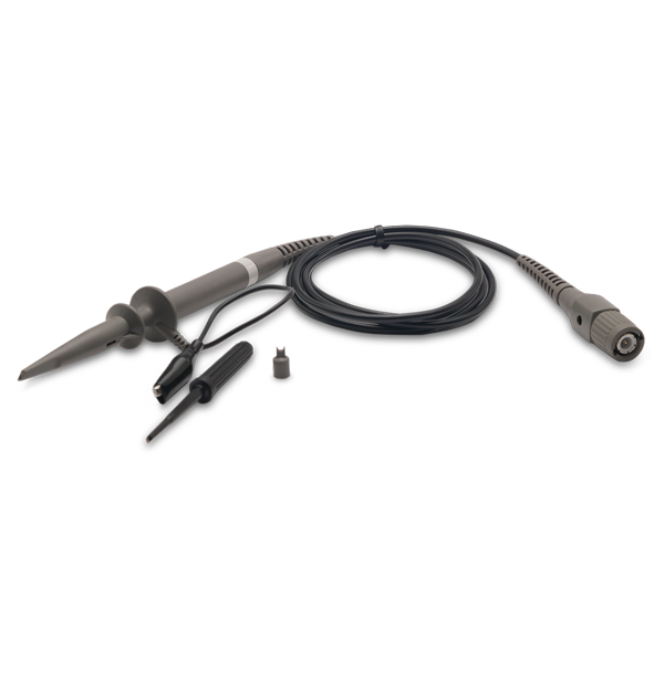 The Extech TL625 is a replacement 100 MHz High Voltage Oscilloscope Probe for the MS6000 series Oscilloscopes. It measures up to 10 Mohm input impedance, 17.5 pF capacitance, and 2000 V with a 15 pF to 35pF compensation range. Includes probe tip, 1.2 meter long cable, ground lead, and adjustment tool.