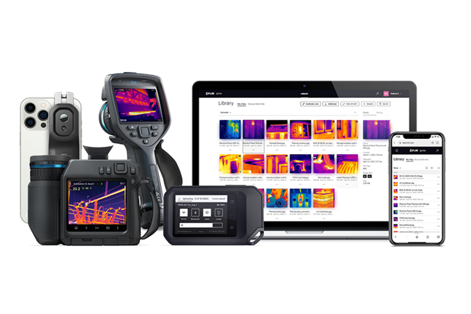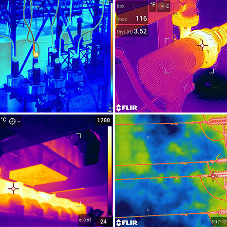 Flir thermal cameras and meters allow you to quickly scan large areas for hot spots on machinery or electrical systems that could indicate a potential problem.
