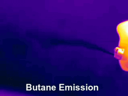それは、カメラによっては可能となります。 一般的な赤外線カメラでは、ガスを直接検出することはできませんが、高度なスペクトルフィルタリング機能を備えたガス検知用赤外線カメラを使用すると、排出された特定のガスを可視化することができます。
