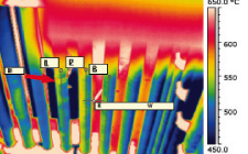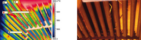 高温に達する熱成分については、高精度に測定を行える反面、極めて局所的な範囲の測定しか行えません。しかし、赤外線を用いて広範囲の表面の検査を行えば、重要なパラメータを素早く認識することができ、クリーンかつ安全性の高い生産が実現します。例えば、コーキング/汚れ/酸化物の層により、プロセス温度が低下していないか確認することができます。 また、内部全体の動作温度や 表壁への影響について確認することもできます。