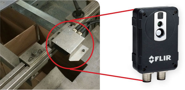 Recochem社は、効率的な接着剤モニタリング手法を求めて、まずはシングルスポットの赤外線センサーを試してみることにしました。 「接着剤は熱を帯びているため、その温度情報から塗布状況を検査できると考えました」と、Adam Wolszczan氏は語ります。 「しかし、箱の底部のフラップを検査できる位置に赤外線センサーを設置することはできませんでした。 また、フラップが開いている状態でなければ、赤外線センサーで塗布状況を調べることもできませんでした。」