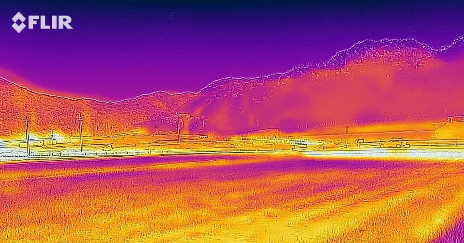 フリアーのサーモグラフィカメラで撮影した新築現場写真と熱画像。対象物の輪郭がはっきり写ることが特徴