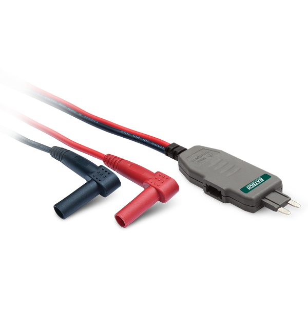 The Extech AUT-TLM are Car Fuse Adapter Test Leads, featuring an automotive fuse adaptor with a mini-blade connector. The 80 cm (2.6 ft) connector cable with standard, shrouded, right-angle banana plugs allow for use with virtually any DMM with a 20 A current input.