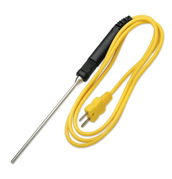 The Extech 871515 is a Type-K general purpose temperature probe that can accurately measure temperatures from -40°C to 700°C (-40°F to 1292°F). The probe is 100 mm (4 in) long, 3.2 mm (0.126 in) in diameter, and is attached to a 1 m (39 in) cable with Type-K mini connector, so it is compatible with any meter that supports Type-K inputs. The Extech 871515 comes with a 6-month warranty.