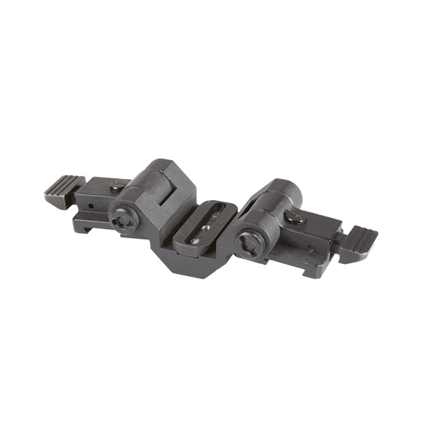 Dual bridget allow mounting of two monoculars to achieve binocular night vision. Hinged arms enable independent flip-up of each monocular and mouting point on bridge connects to a headgear adapter.