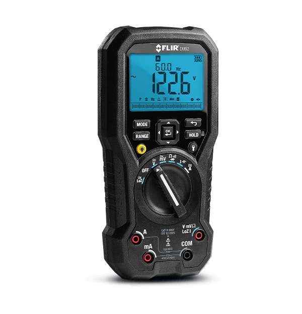 FLIR’s DM92 and DM93 world-class digital multimeters offer advanced variable firequency drive filtering to help you accurately analyze non-traditional sine waves and noisy signals. No matter what electrical challenge you're up against, the DM92 and DM93's powerful lighting and durable design will make the job simple. The DM93 offers additional features including Bluetooth technology to connect a compatible smartphone for remote viewing and sharing, and METERLiNK® technology, to wirelessly embed electrical readings into radiometric infrared images on compatible FLIR thermal cameras.