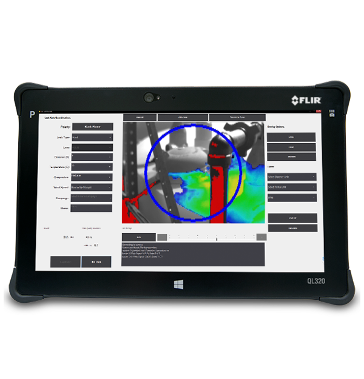 The FLIR QL320 has the built-in tools needed to validate leak surveys, plus a Δ temperature screening tool to determine suitablility of background conditions. In-field reporting includes archiving of measurements, colorized video and raw data for analysis and post-processing.