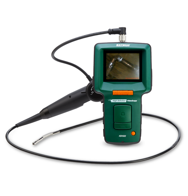 The HDV540 is a light-weight VideoScope Kit that includes a wired handset and 6 mm diameter camera. Easy, one-hand operation of the articulating camera tip facilitates viewing in obstructed areas where standard camera tips cannot access. Images and videos are viewed on the high resolution color display or external monitors, and they can be stored in SD memory card (included) or a USB flash drive. Featuring a glare free close up field of view, AV output for viewing images/video on a monitor, record voice-over audio in video recording mode, and memory storage of 20,000 images. Complete with 3.7 V rechargeable Li-Polymer battery, 100 V/240 V Universal AC adaptor and multiple plug types (US, EU, UK, AUS), USB and AV cables, and a hard carrying case.