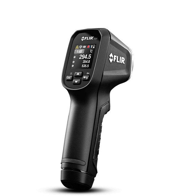 The FLIR TG54 provides non-contact surface temperature readings so you can quickly and easily take measurements in places that are out of reach. Providing a distance-to-spot ratio of 24:1, the TG54 can measure smaller targets from a safer distance. The thermometer gives you control to view your current reading and last two temperature readings simultaneously, and the color screen makes it easy to navigate and select settings.
