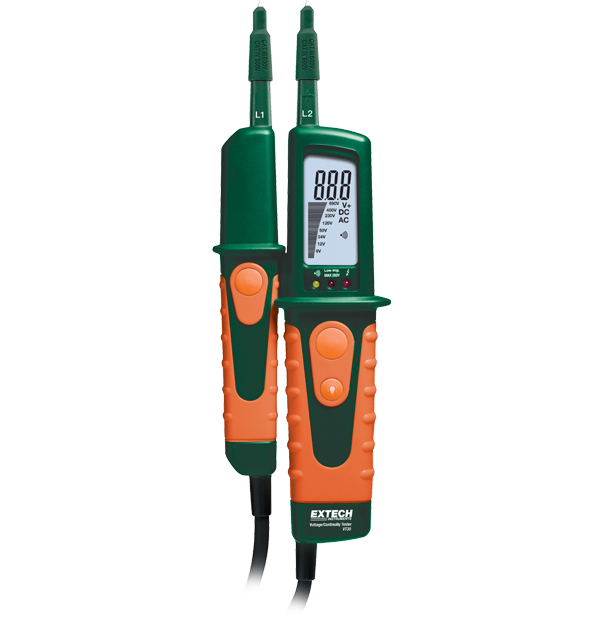 The Extech VT30 is a voltage, continuity and phase tester, featuring a built-in flashlight and backlit digital display with bar graph. This rugged tester is protected by a double molded IP64 housing and offers polarity detection with LEDs for positive and negative DC as well as a CAT III 600 Volt / CATIV 600 Volt safety rating. The VT30 comes complete with a one year warranty, 2 AAA batteries, protective cap, and pouch case.